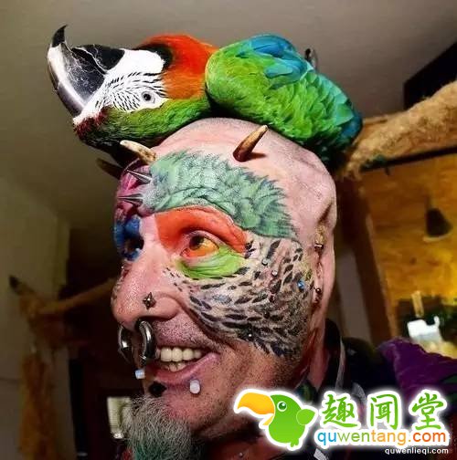割掉耳朵,身上穿孔,56岁男子把自己整成了鹦鹉的样子!