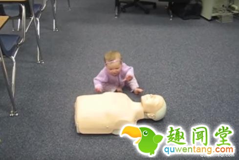 妈妈将一个假人放在宝宝面前,宝宝竟然当成真人做起了人工呼吸~