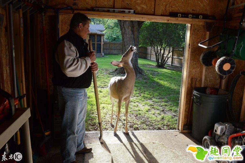 最后,这对夫妇只好把Lilly带回了家。Lilly现在已经长成了一头成年的鹿,每天在主人的厨房里吃东西,看电视,跟狗狗们一起玩飞盘。(图片来自东方IC)