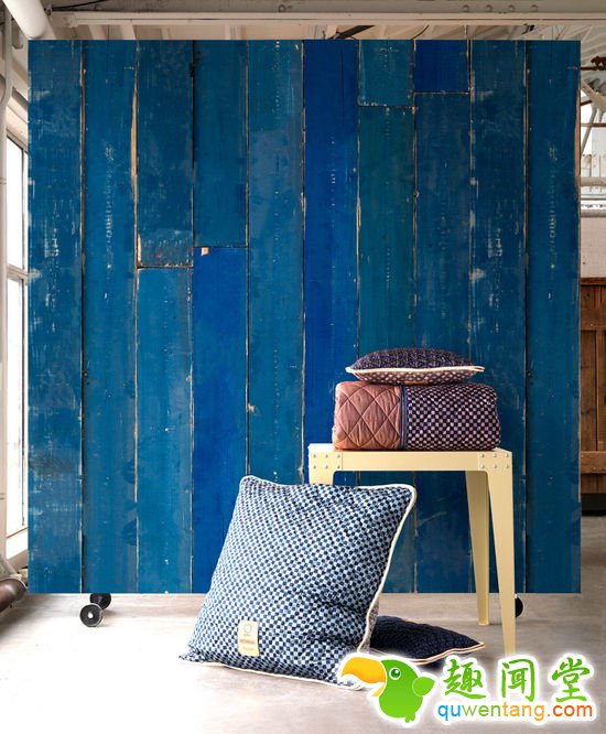 两面“木板墙”。关于那块“蓝色的废木板”,设计师 Piet Hein Eek 说,“人们总是让我设计蓝色的墙纸。而当一批蓝色木板出现在我的工作室时,我就觉得我们确实该做点什么。”这个成品可比普通的“蓝色墙纸”让人惊喜得多。