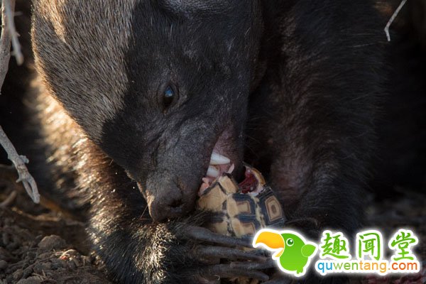 壳硬乌龟遭蜜獾捕食 瞬间被咬碎